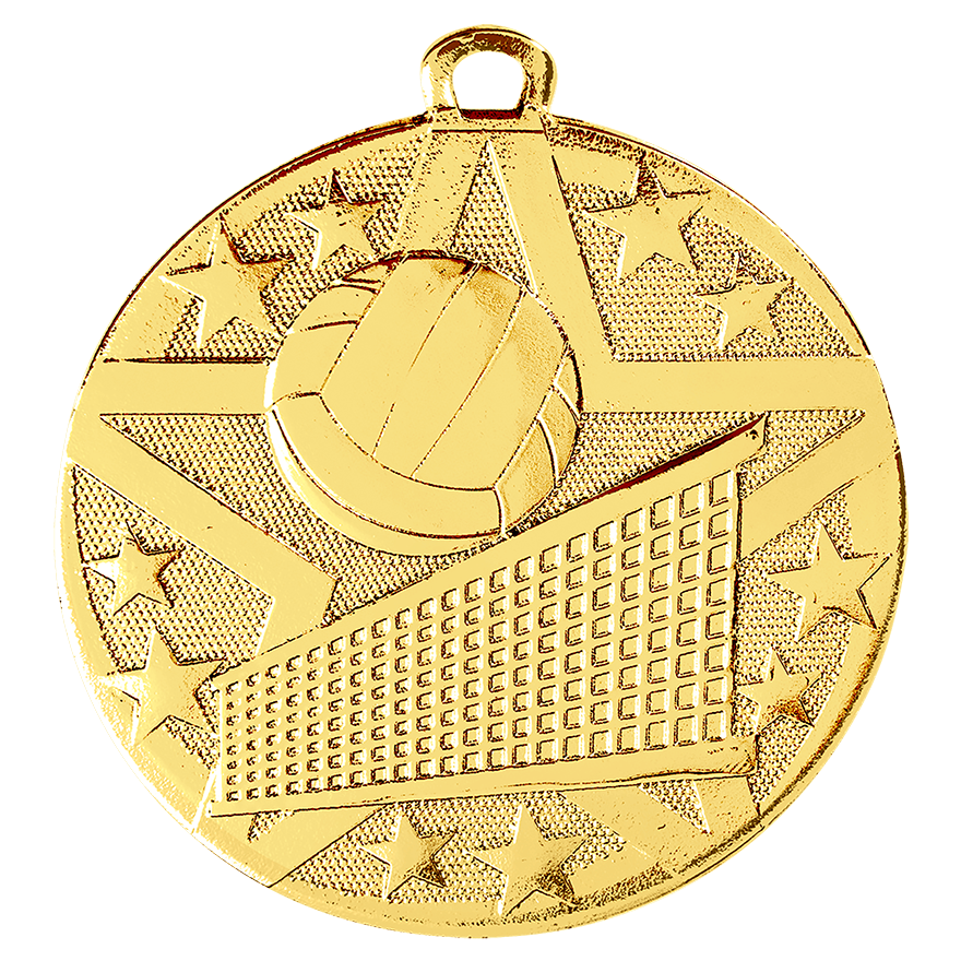 Celebrate victory with this gleaming gold medal, featuring a detailed volleyball and net surrounded by stars β the perfect way to honor outstanding performance on the court!